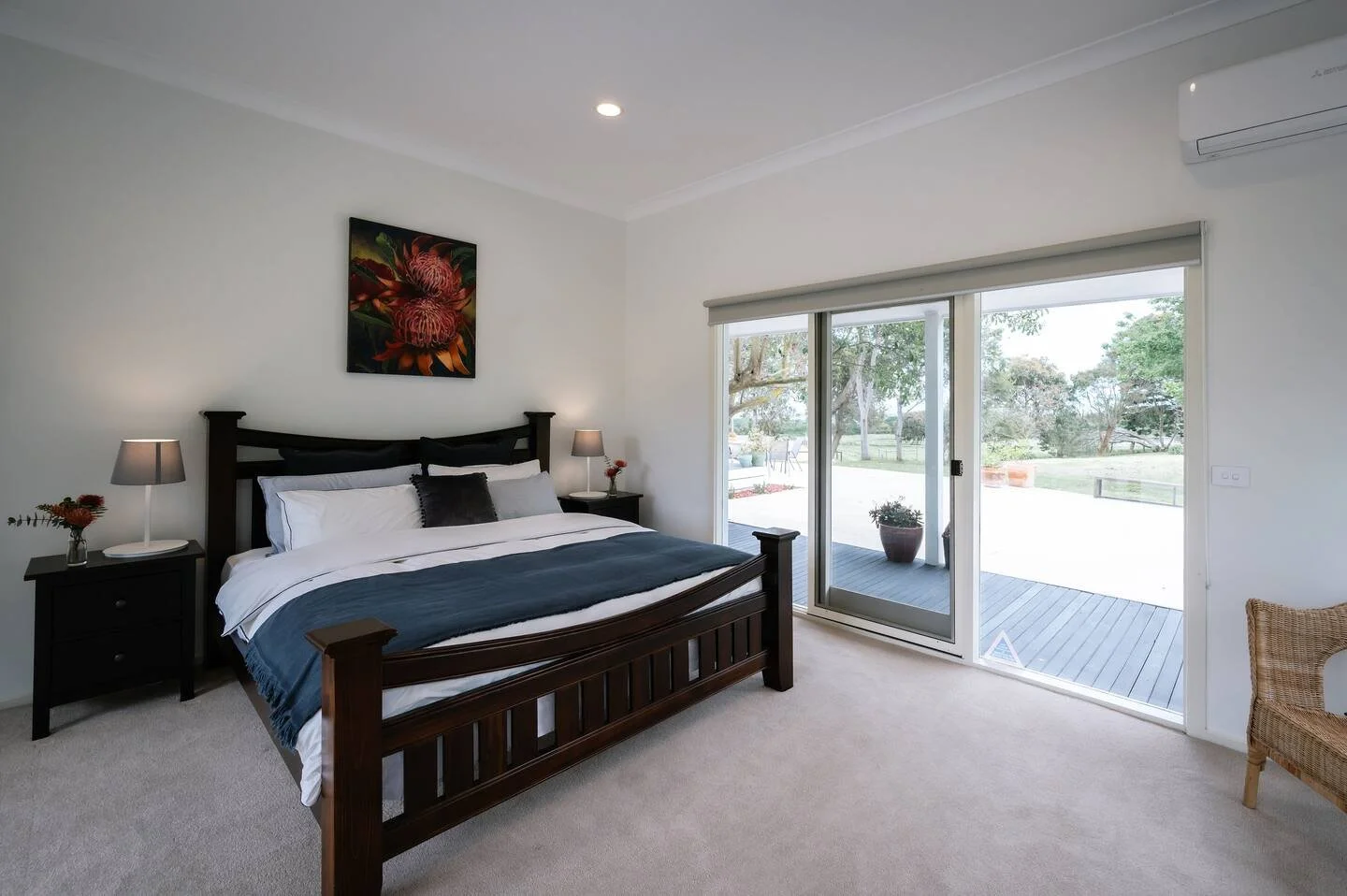 You’re surrounded by fertile farmlands with a distant view right out to the Bass Strait. Native birdlife, curious wildlife, and the resident Clydesdales, Dolly sheep and Alpacas keep you company as you welcome stunning sunrises from the sweeping verandah.